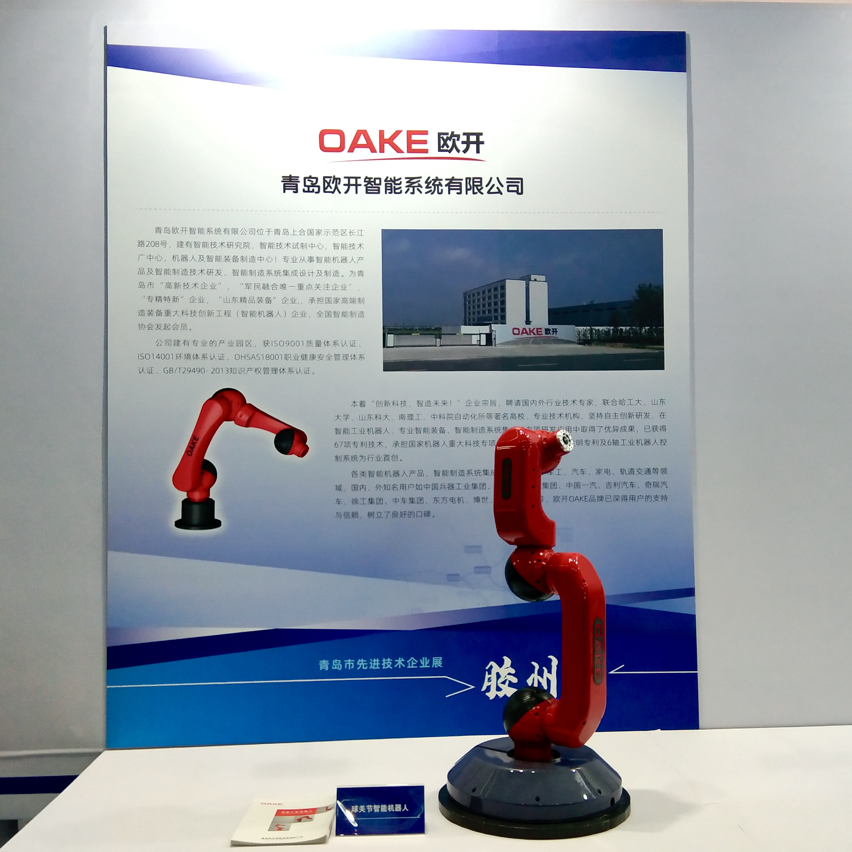 交流展會(huì )為期3天,我司作為青島膠州企業(yè)代表在交流會(huì )現場(chǎng)設置展位。展位展出我司專(zhuān)利——球關(guān)節智能機器人。該機器人為國家高端制造裝備重大科技創(chuàng )新工程(智能機器人)項目——面向裝配作業(yè)的人機協(xié)作型雙臂七自由度機器人,球形關(guān)節機器人發(fā)明專(zhuān)利及6軸工業(yè)機器人控制系統為行業(yè)首創(chuàng ),該項目技術(shù)為世界領(lǐng)先水平,填補國內空白。我司的球關(guān)節智能機器人吸引各界專(zhuān)業(yè)人士駐足觀(guān)看,了解學(xué)習。
